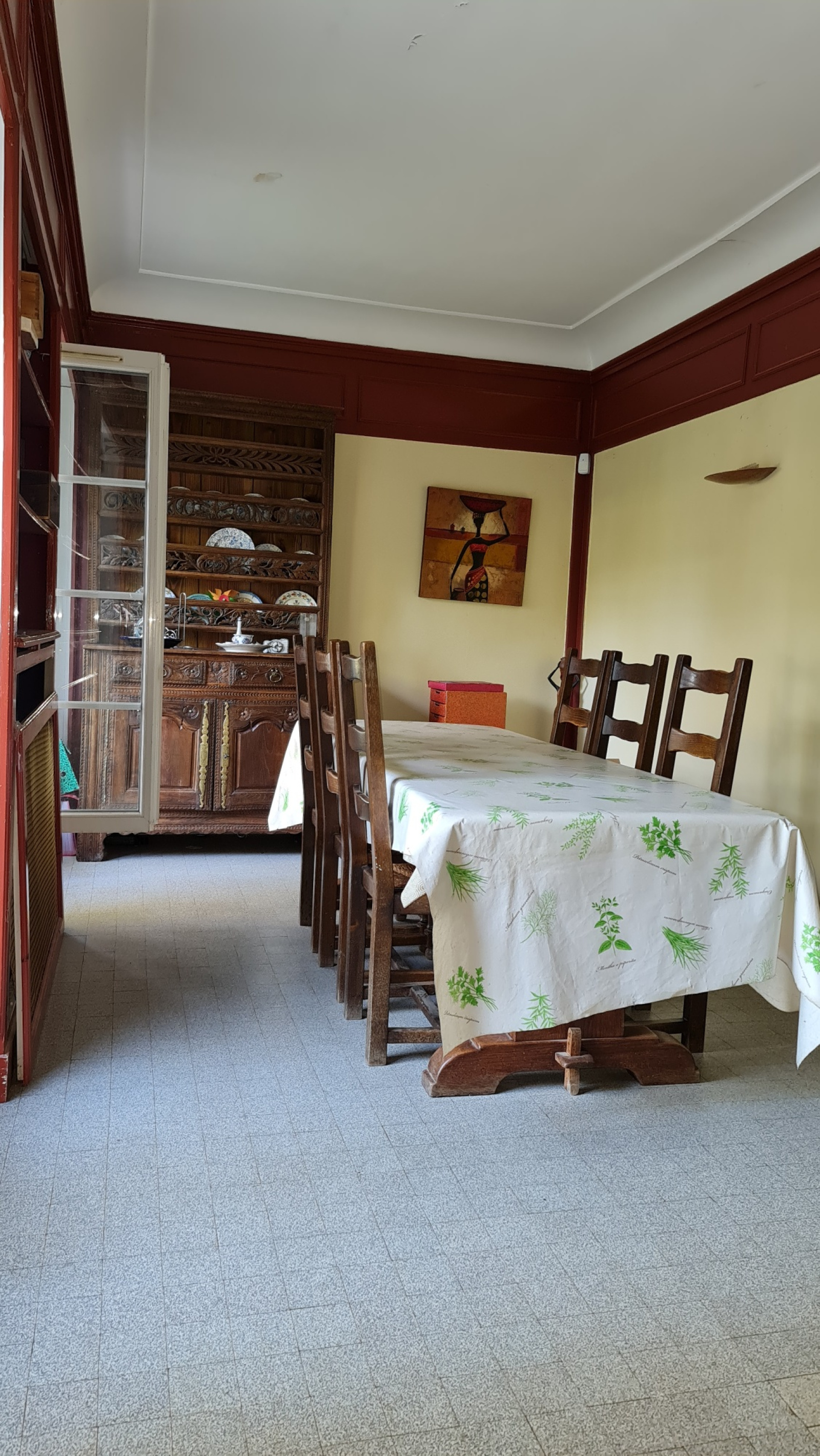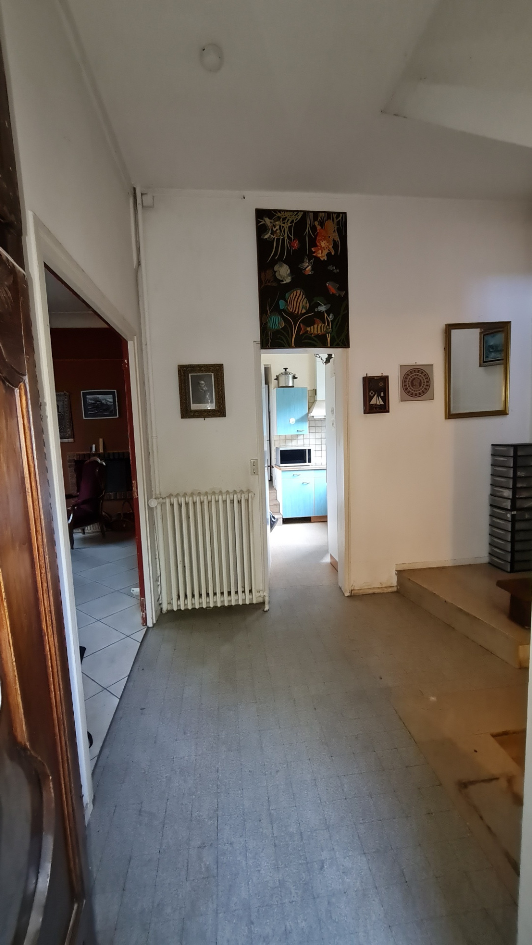 • Rez-de-chaussée : Une entrée, un salon de 28 m² avec une belle hauteur de plafond et une cheminée, une salle à manger attenante, une cuisine séparée, une chambre, avec salle d'eau privative.