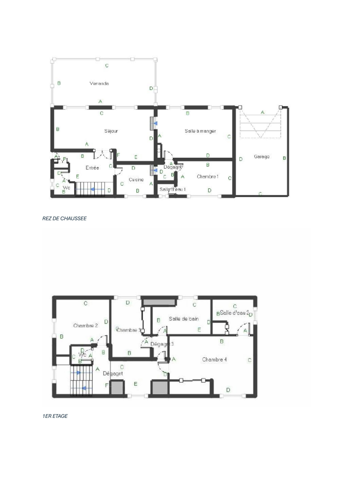 • À l'étage : Un dégagement dessert trois chambres dont une avec sa salle d'eau privative, une salle de bains, et un water-closet.