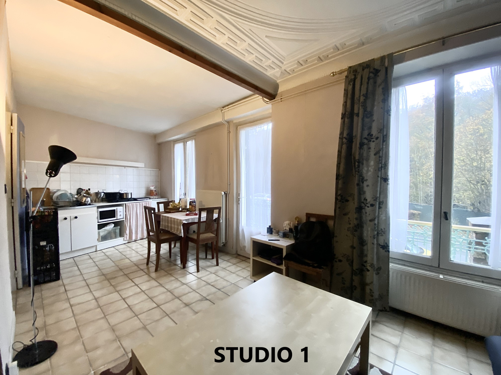 - Lot 1 : Au premier étage, un studio meublé d'environ 23,28 m² composé d'une pièce principale avec coin cuisine, d'un accès à un balcon privatif, une salle d'eau avec WC. Logement à consommation énergétique excessive: classe F. Montant estimé des dépenses annuelles d'énergie pour un usage standard : entre 656 € et 888 € par an. Prix moyens des énergies indexés au 01/01/2021 (abonnements compris)
